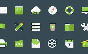 無料素材:グリーンがキーカラーのお洒落なフラットデザインアイコン60個セット