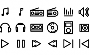 無料素材:シンプルで使いやすい!音楽や楽器のアウトラインアイコン36個セット