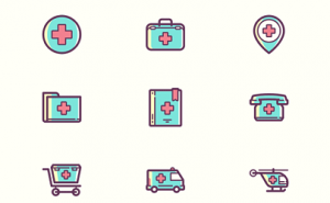無料素材:医療を可愛くデザインしたベクターイラストアイコン75個セット